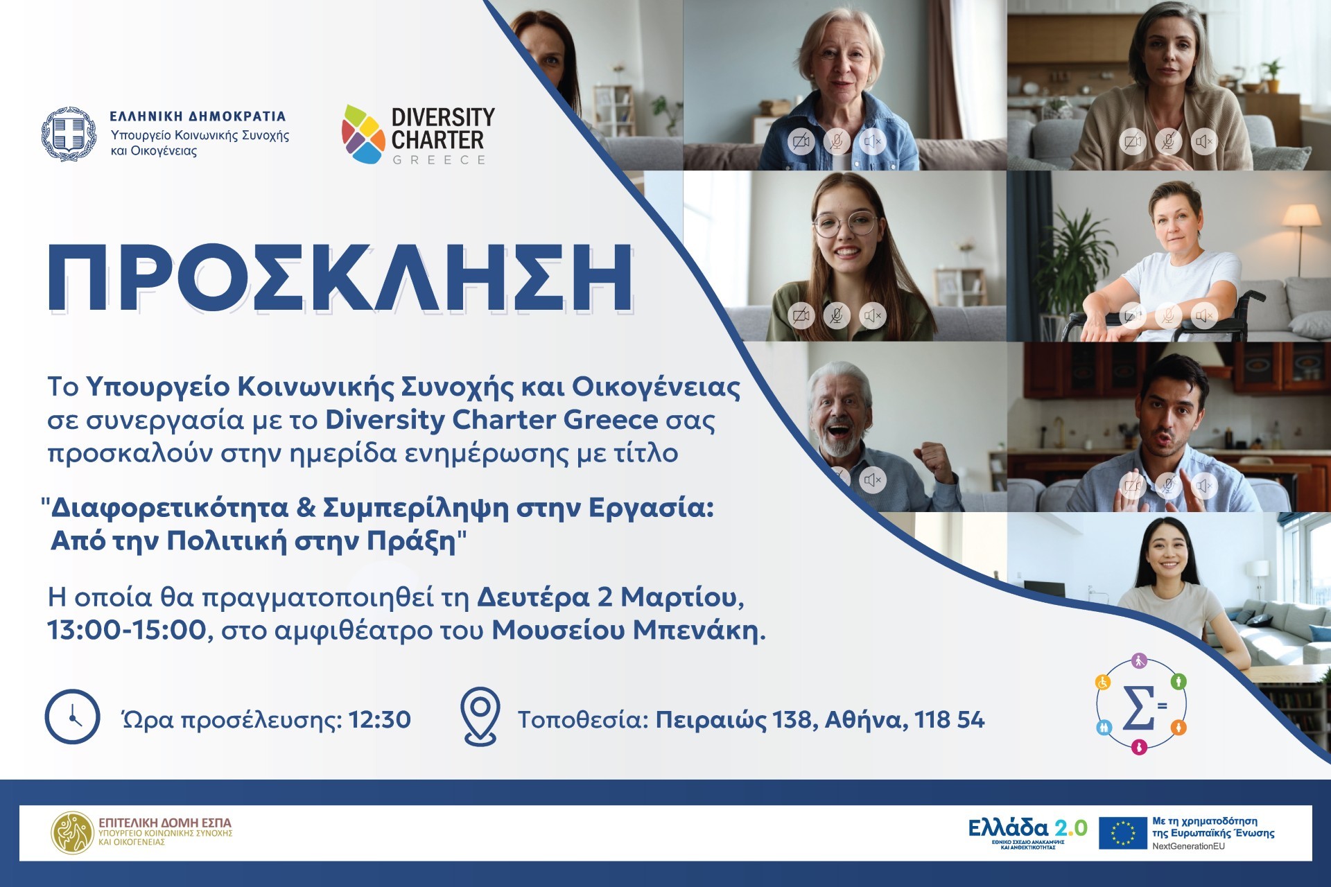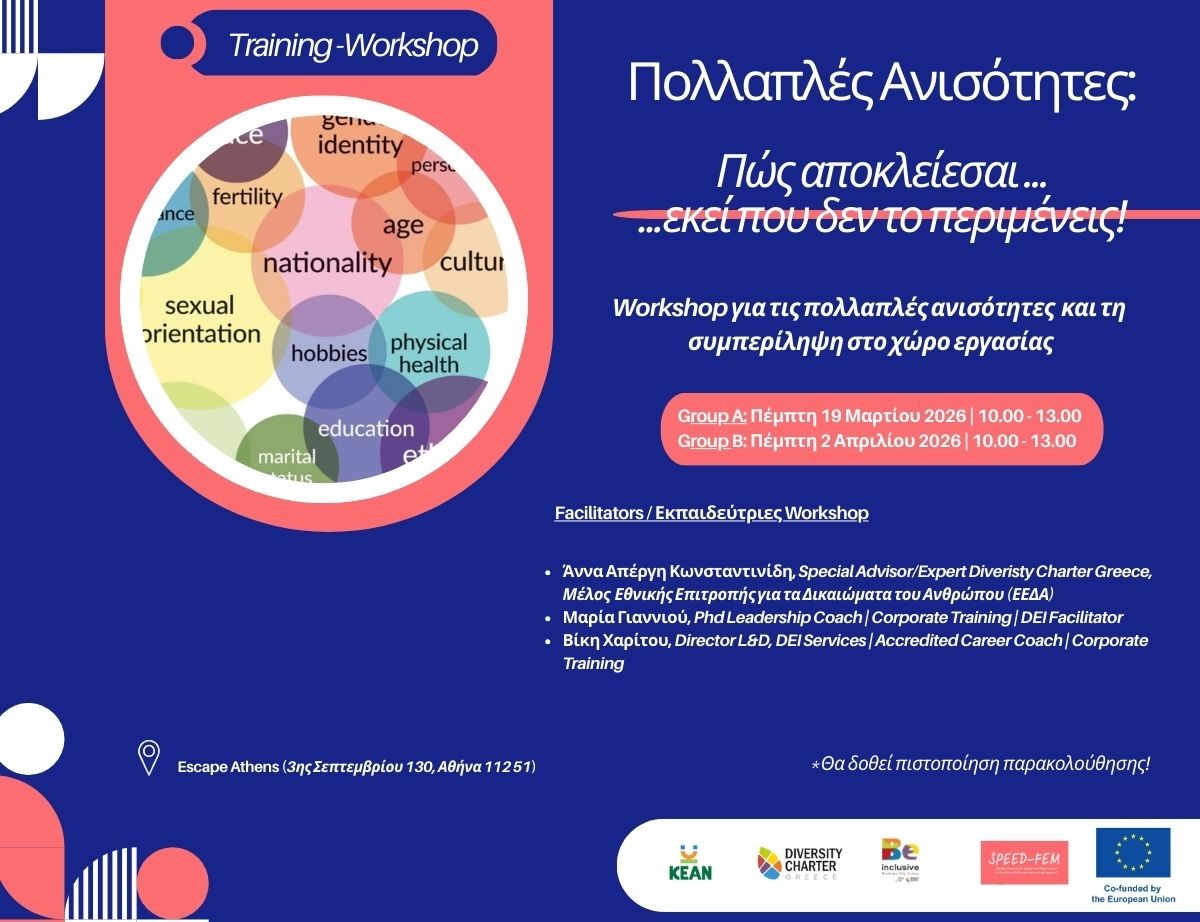 Το Υπουργείο Κοινωνικής Συνοχής και Οικογένειας, σε συνεργασία με το Diversity Charter Greece, διοργανώνει ημερίδα με τίτλο: «Διαφορετικότητα και Συμπερίληψη στην Εργασία: Από την Πολιτική στην Πράξη»